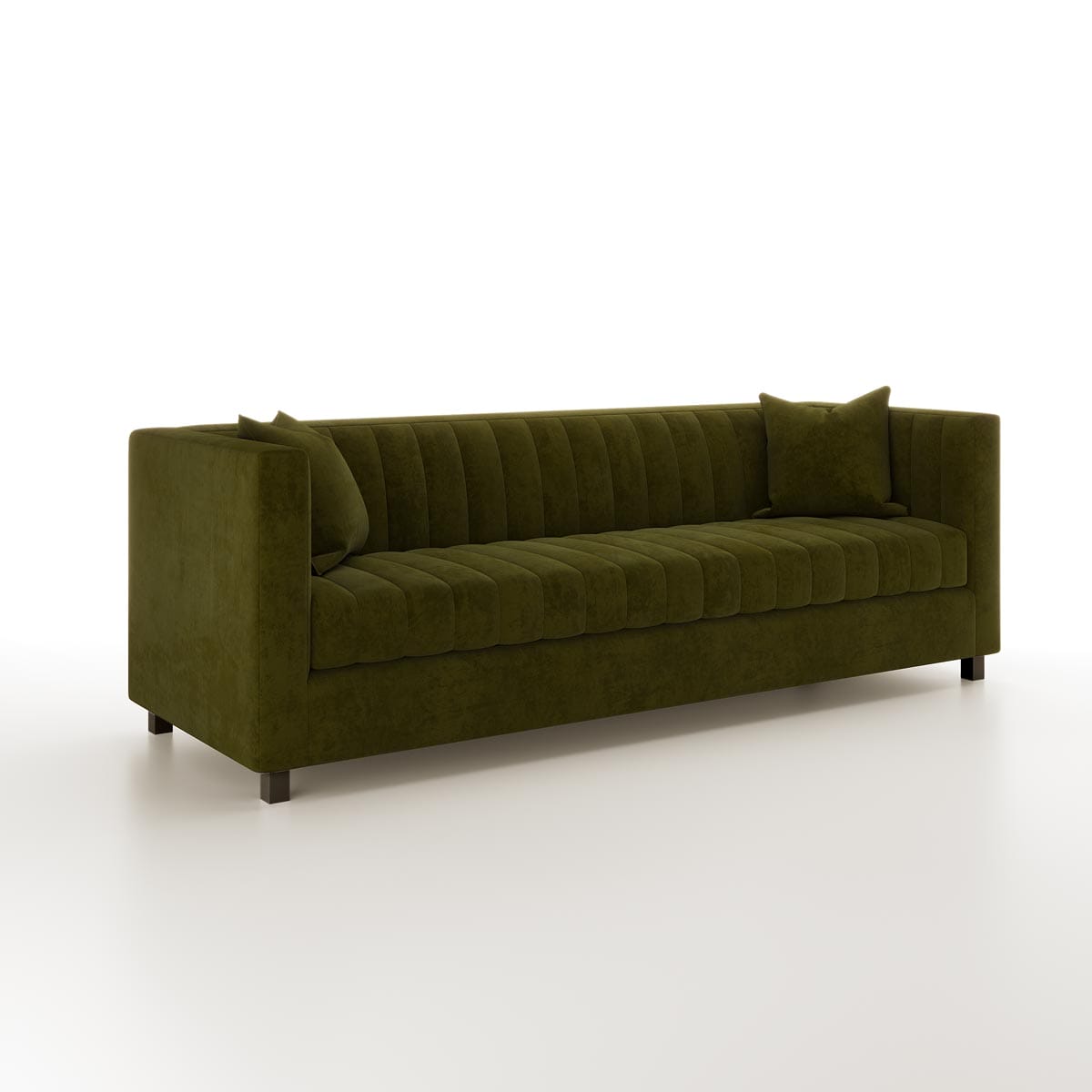 Shown upholstered in Jasmine Velvet, colorway Valencia Moss.