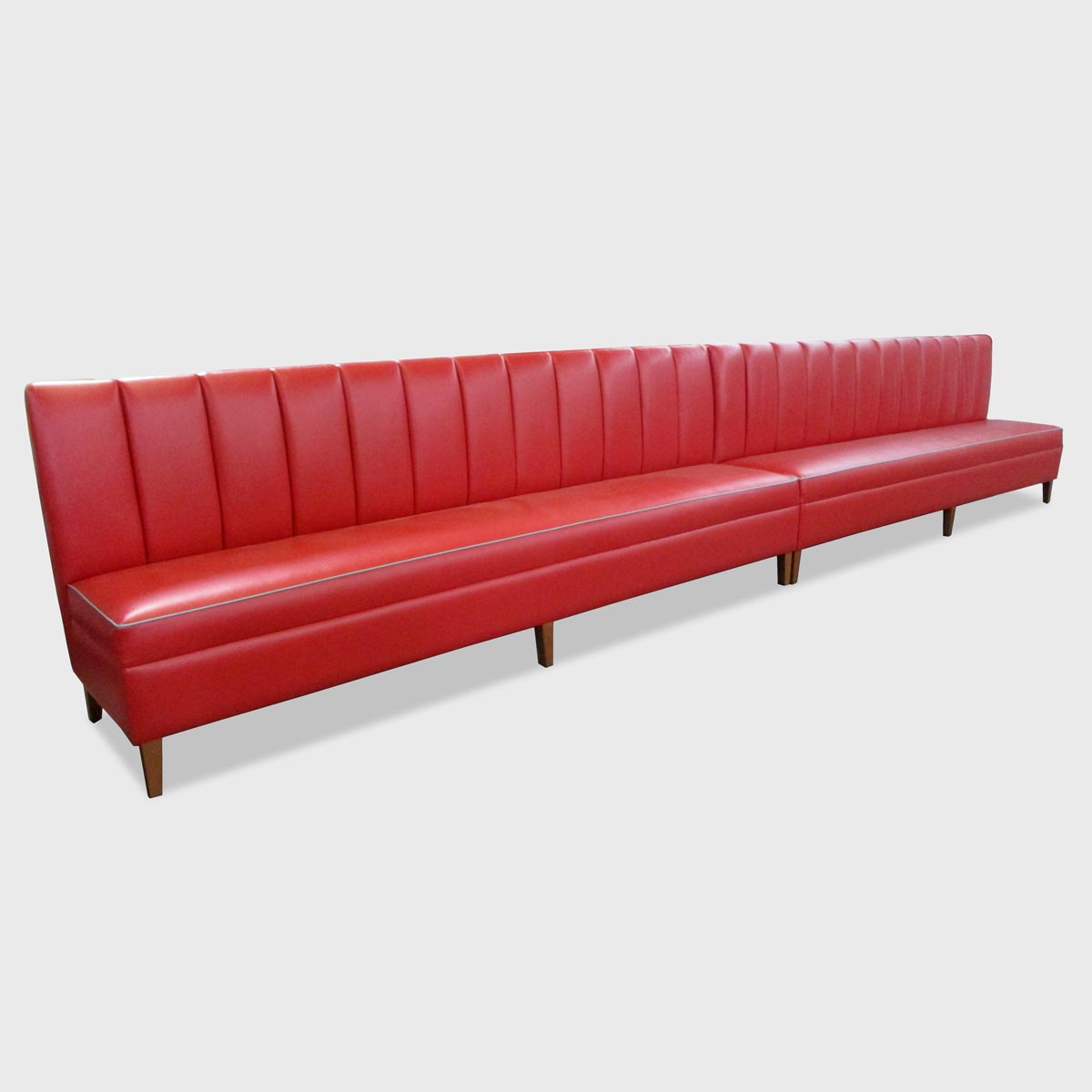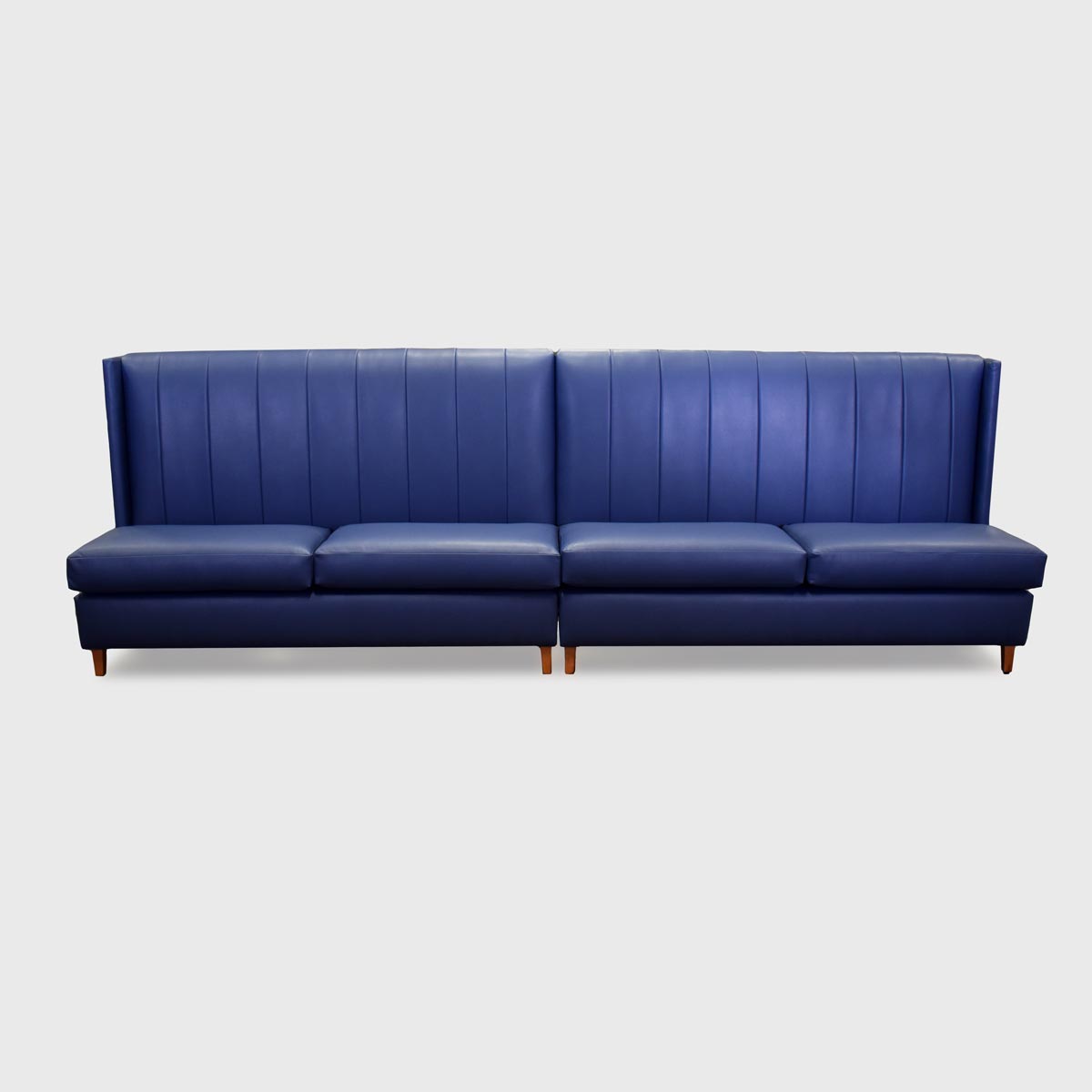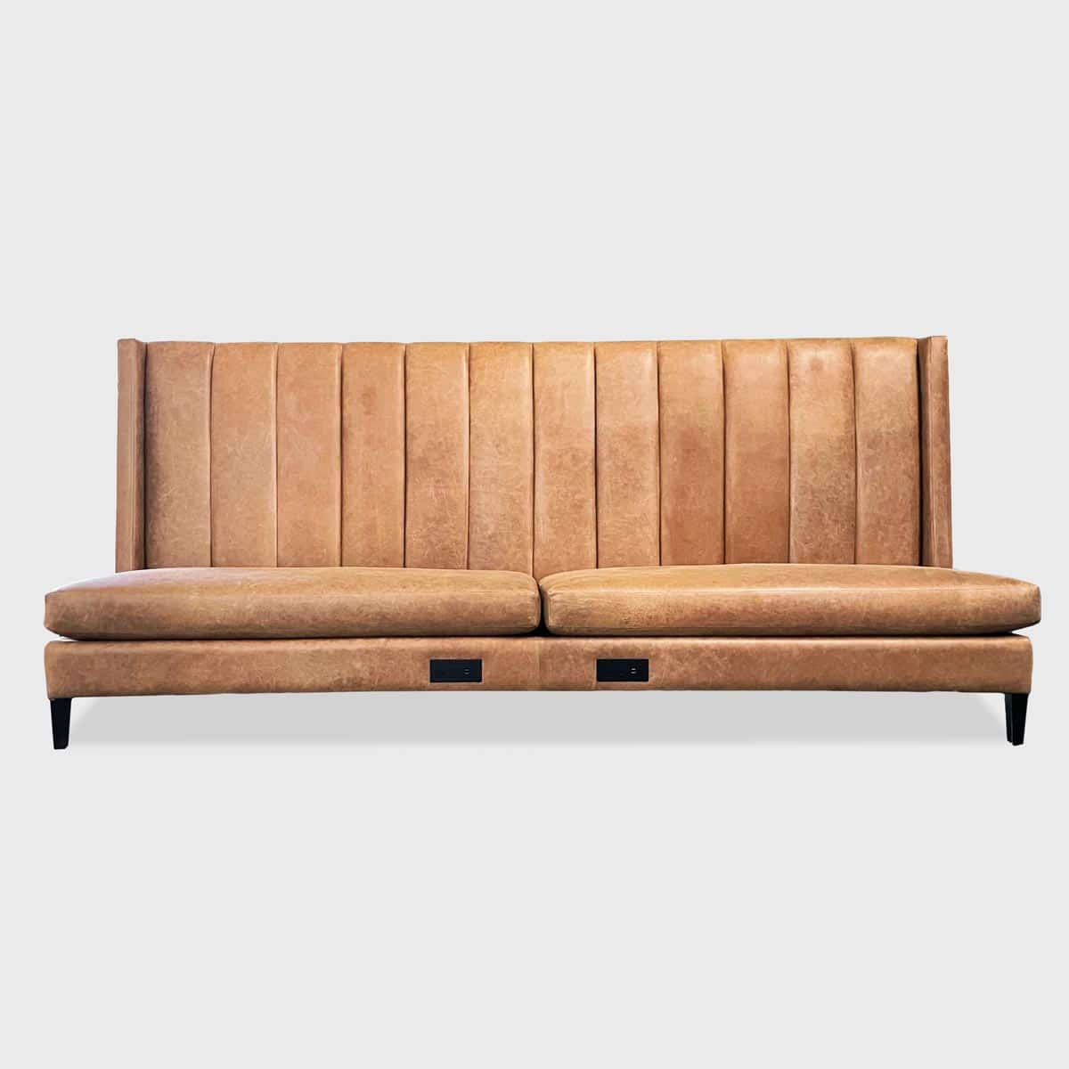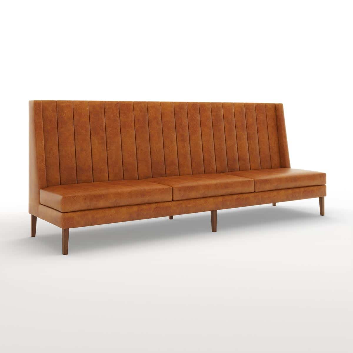 The Shalie Banquette sits on tapered wood legs and features loose seat cushions, a vertical-channeled back and subtle wings, making it a clear stand out among nearly all banquettes.